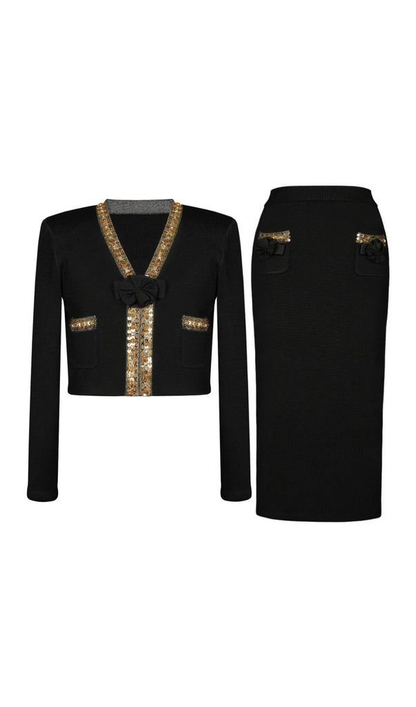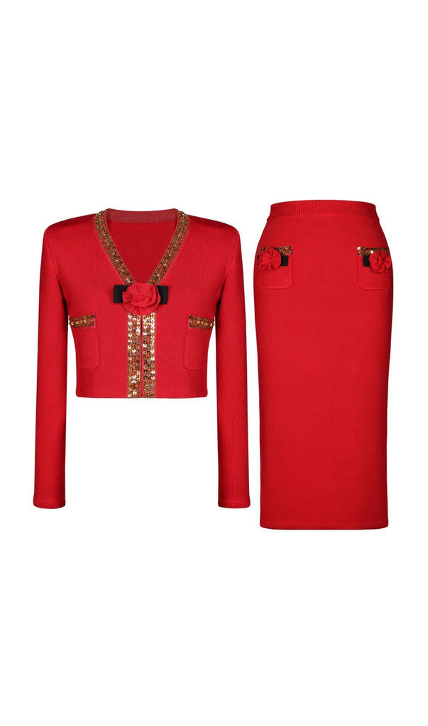 Flower Embellished Skirt Set adds a touch of playfulness to your wardrobe. The floral embellishments add a pop of color and personality, perfect for any occasion. With its charming style, this set allows you to express your fun and quirky side.