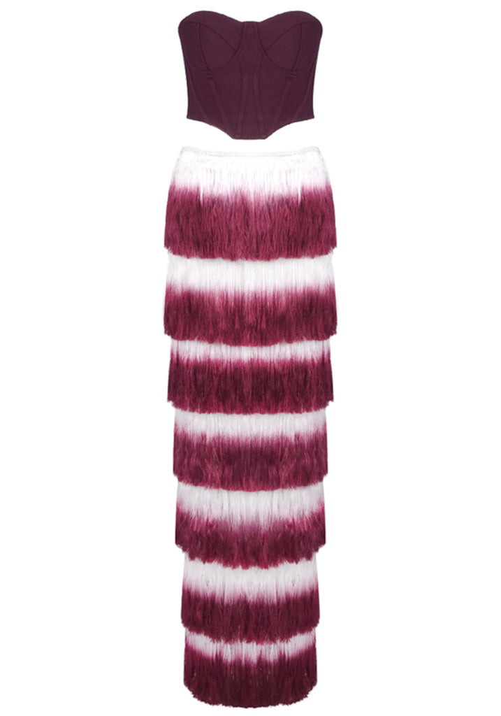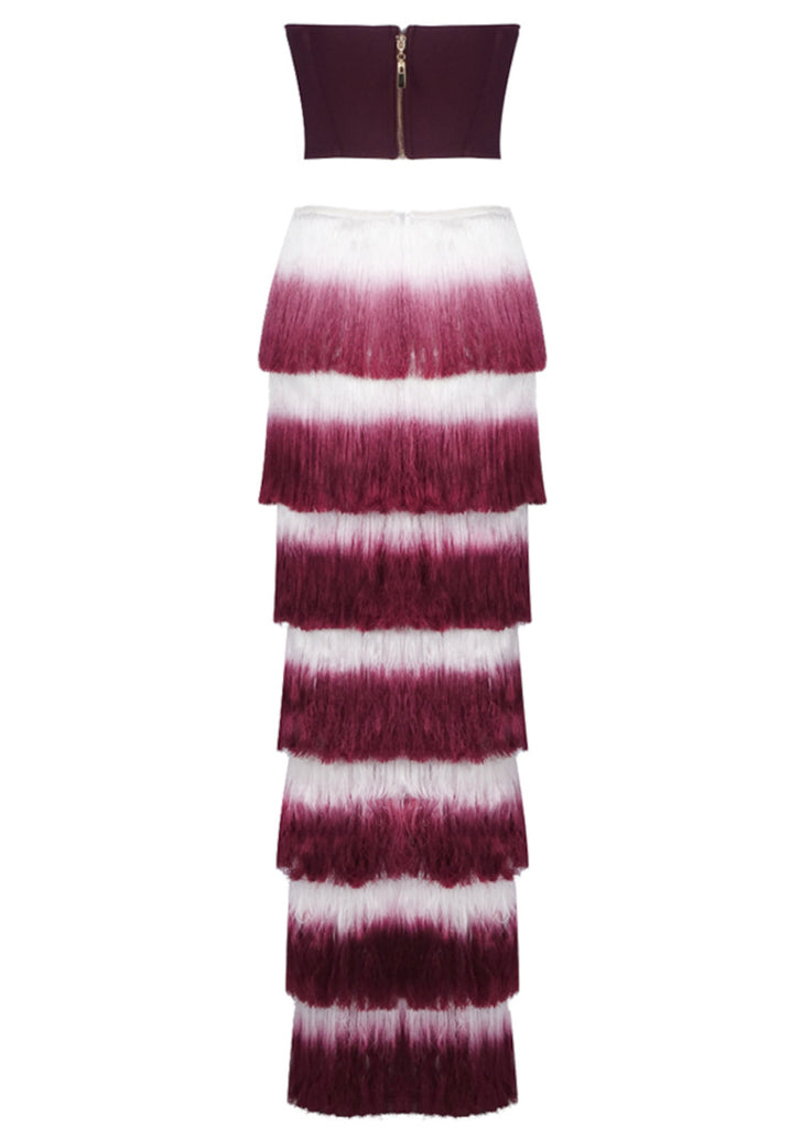 Beautiful bralette set with a tassel skirt perfect for that office party.