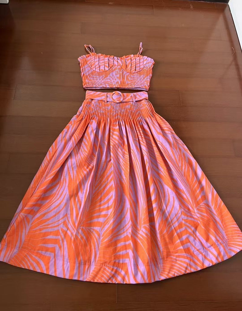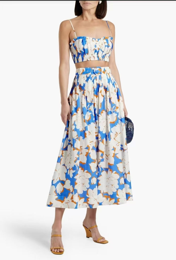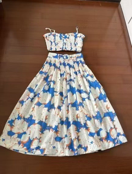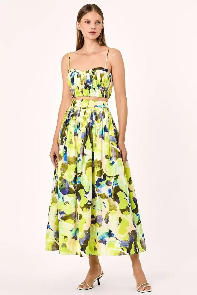 The Marylou Set blends elegance with a carefree tropical vibe, making it the perfect outfit for resort vacations, summer brunches, and warm-weather occasions. The strapless tube top creates a sleek and flattering silhouette, while the high-waisted pleated maxi skirt adds graceful movement with every step. Designed with delicate ruffle accents and a belted waist, this set highlights your figure while keeping you comfortable and stylish. Pair it with strappy sandals and statement earrings for an effortlessly chic look that transitions seamlessly from beachside afternoons to elegant evening outings.