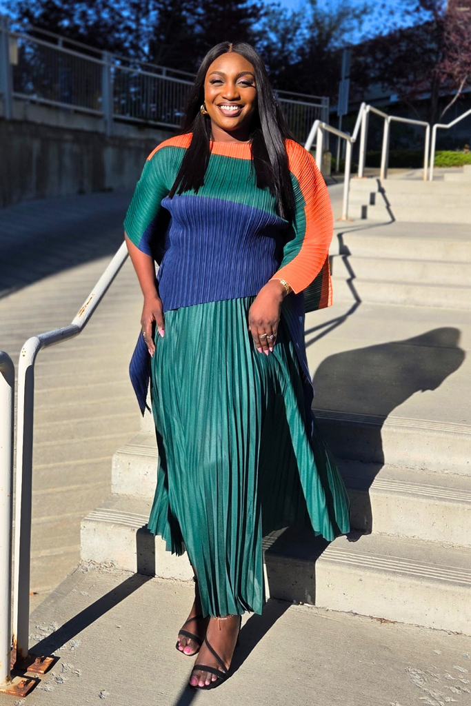 Pleated skirt set we love the colours that are perfect for transitioning into spring.